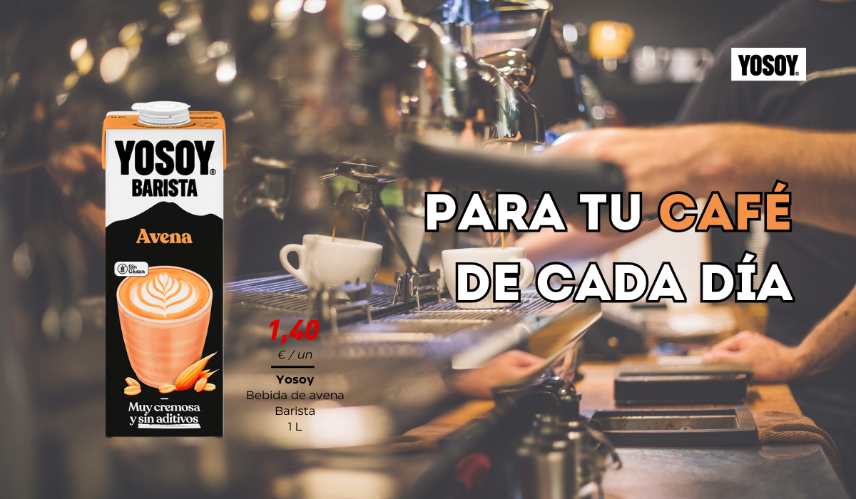 Prepara tu café, con la leche barista de avena de YoSoy, por tan solo 1,40€.