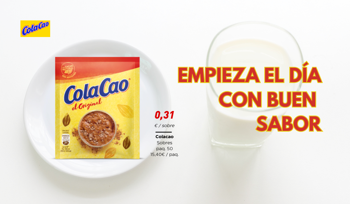Disfruta de un buen desayuno con ColaCao, por tan solo 0,31€.